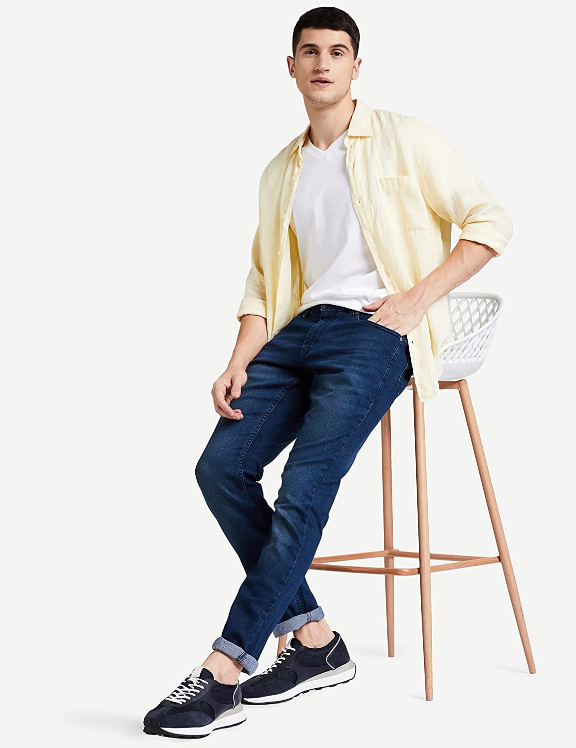 An Amazon brand, Symbol is built on the pillars of quality, reliability and affordability, offering a range of lifestyle essentials that help you look good every day Symbol brings a range of essential stretch Jeans in a variety of washes that keep you subtle & comfortable. Built for varsatility, our essential pair of Relaxed Fit jeans find place in every man’s wardrobe.