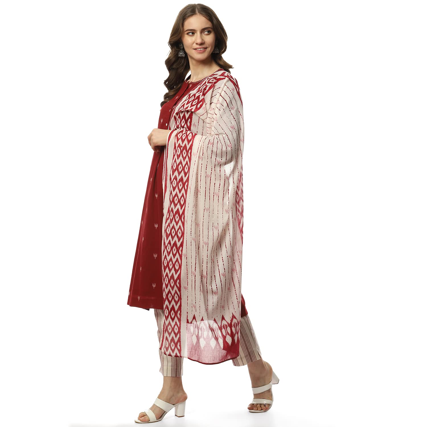 BIBA Women’s Ethnic Rust Cotton Suit Set