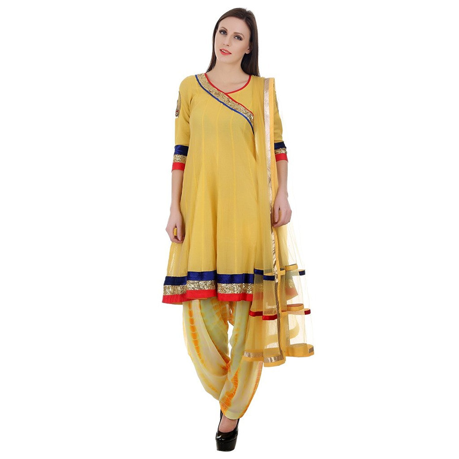 Yellow Chanderi Short Anarkali-Peacock embroidery on the sleeves for Ladies.