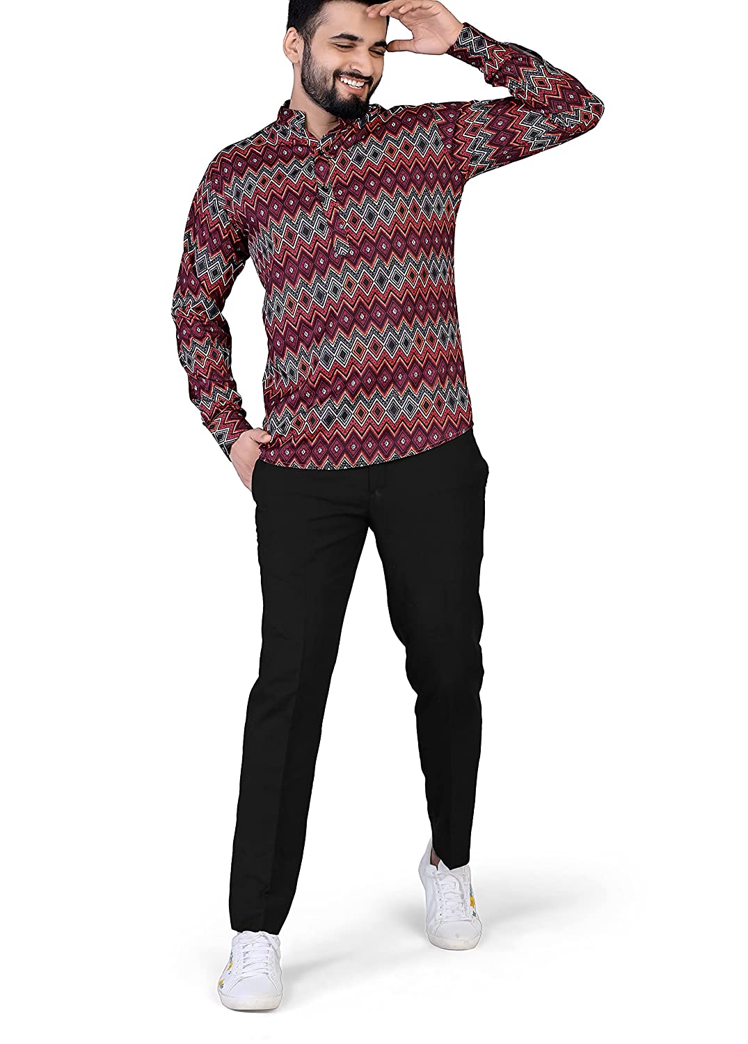 IndoPrimo Men’s Poly Cotton Casual Printed Kurta Shirt