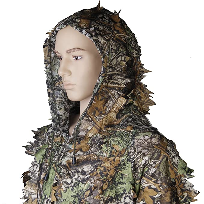 Provides for excellent concealment, designed to be worn over jeans and shirts, suitable for hunting or other forest activities