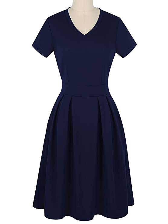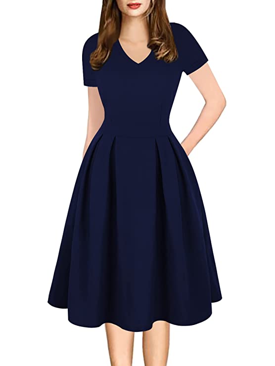 oxiuly xiuly Women’s V-Neck Casual Cocktail Party Casual Dresses Knee-Length Elegant Work Vintage Dress with Pockets OX295