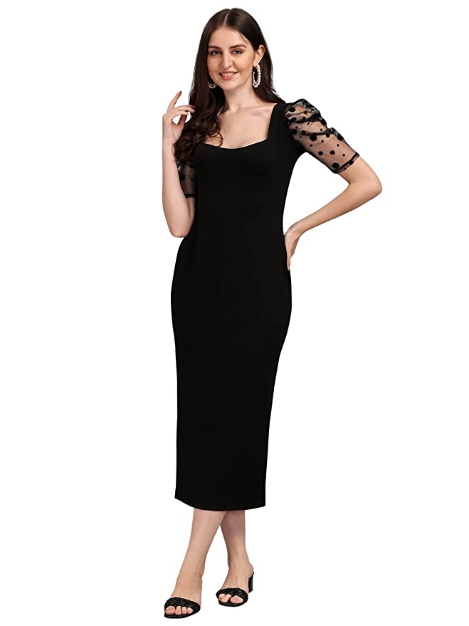 Generic NameSelvia Women’s Synthetic Bodycon Knee-Length Dress (338TK10091N-S_Black_S)
