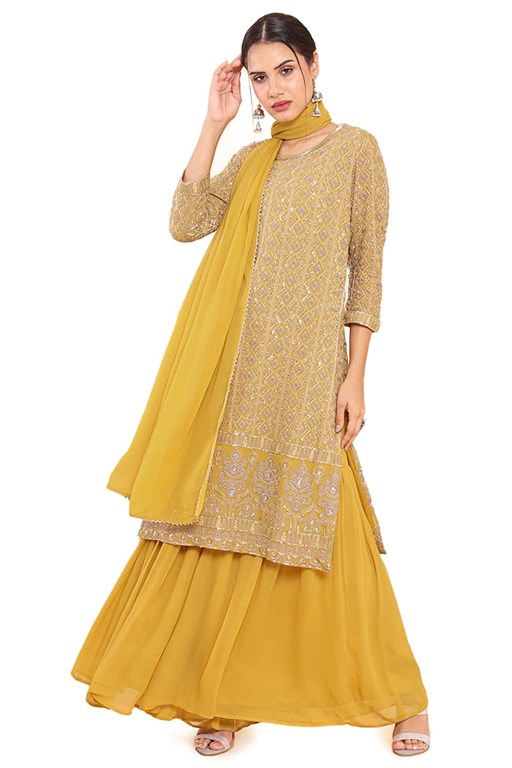 Soch Yellow Georgette Solid Suit Set