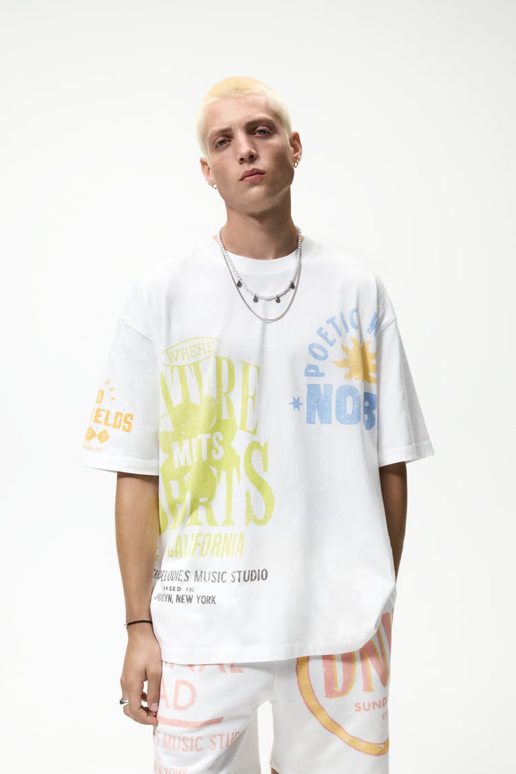 T-shirt with a round neck and short sleeves. Featuring a contrast all-over graphic print.