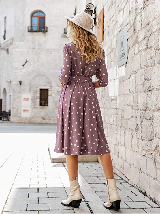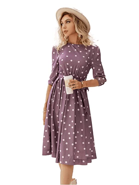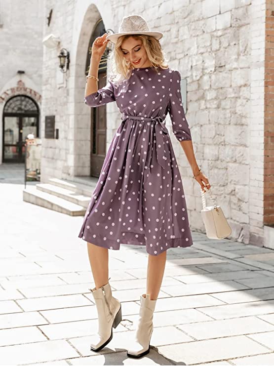 TAGAS Women’s Poly Rayon Fit and Flare Knee-Length Western Dress (OP-3316-PURPLE- Purple_XS)