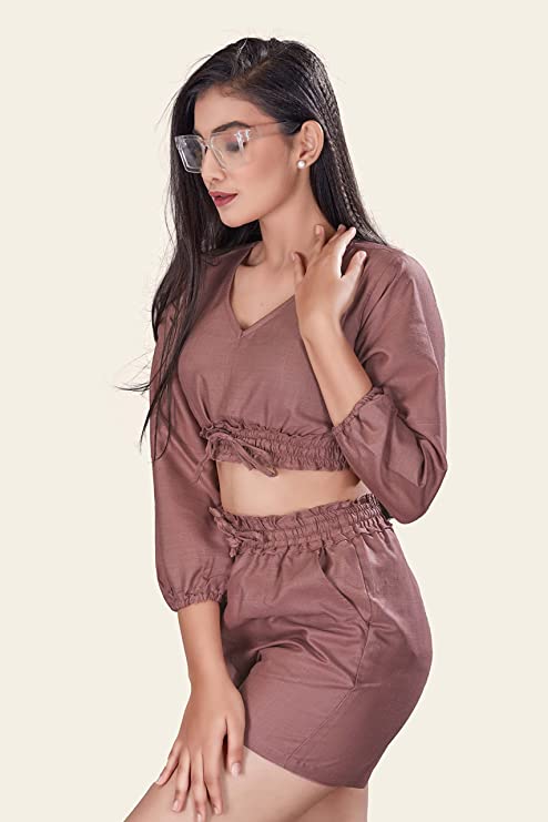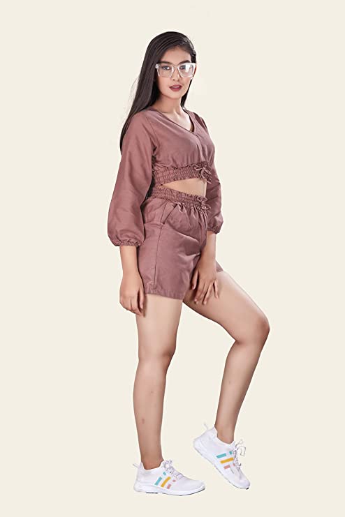 Two Piece Dress for Women Cotton Long Sleeves Women’s V-Neck Top and Shorts – Travel Edition
