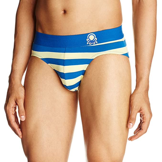 United Colors of Benetton Men’s Cotton Brief (P16DI Blue/Yellow XL)-903